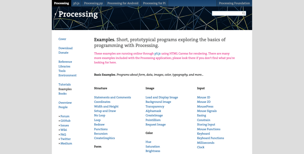 These resources are for students interested in getting into creative coding. We will be focusing on the programming language called Processing.