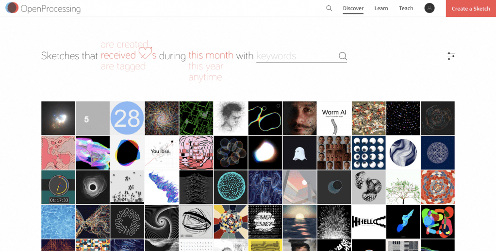 OpenProcessing is an open source creative coding repository. It’s a great tool to share your creative designs on Processing and p5.js.