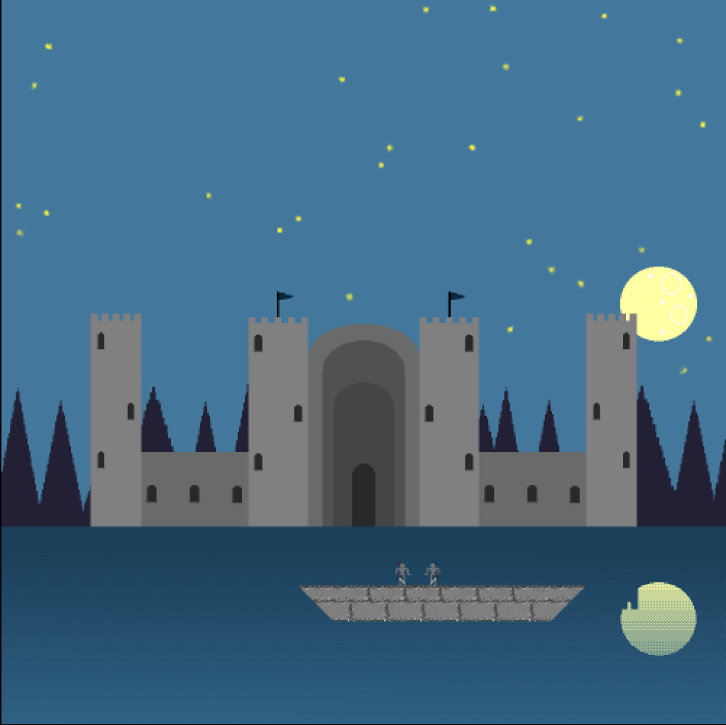 In the game Joust, characters fight on platforms in front of a detailed background. This is the layout I wanted in my game, so I’ve designed some platforms for each level.