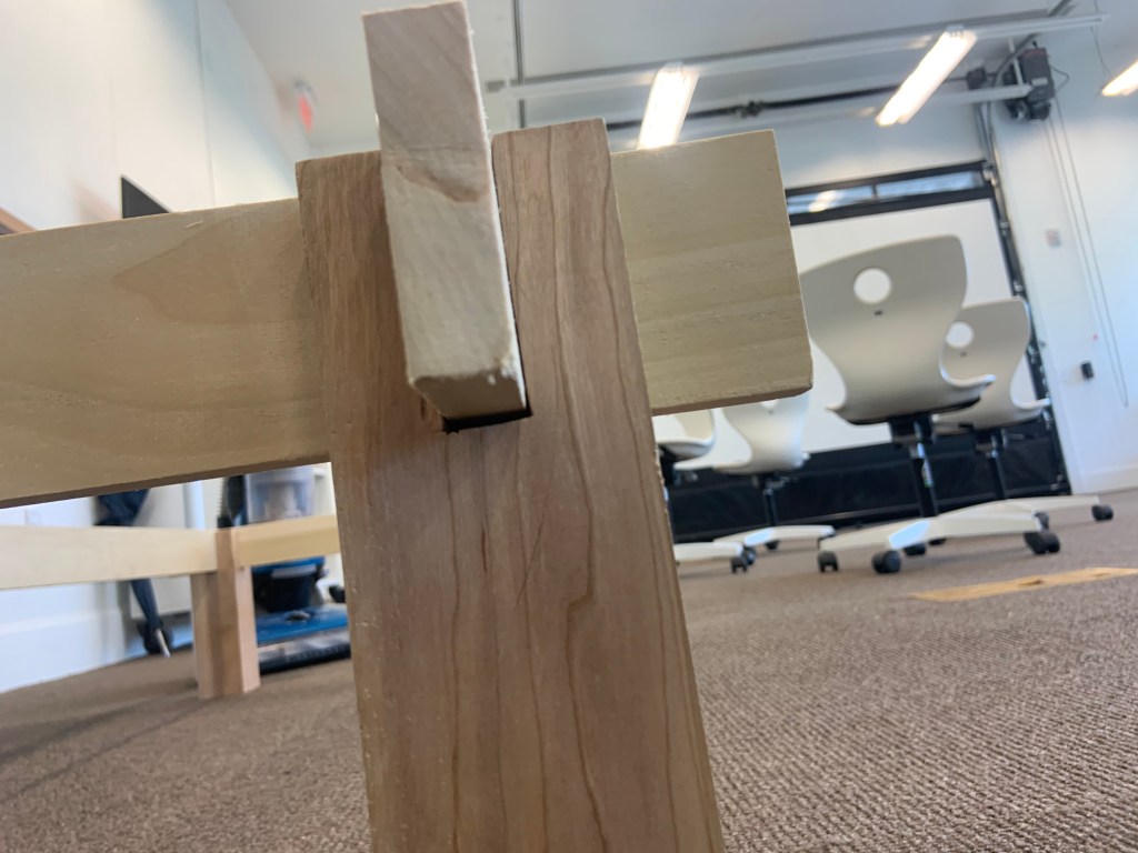 As you can see his physical work is still more impressive than my digital work. His has a story behind it and it is one of a kind. I could try to recreate it but I will never be exact. With my work, anyone can take a measurement and recreate it because it is digital which is where I strive to want to get better at. I want to be able to tell a story through my work and show how it is one of a kind just like Nakashima did. Now here is my physical product. As you look at it notice there are many imperfections. This is due to the lack of skill and understanding in joinery and hand tools.