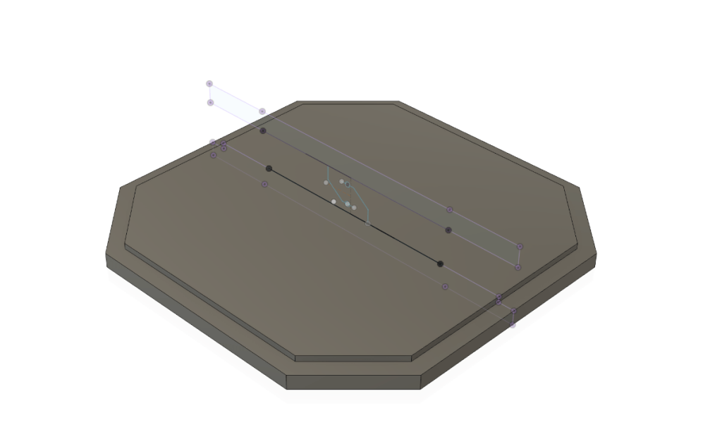 - In this step, I started by raising the top from the bottom slightly to add more space for the hooks. After this, I added a new sketching plane in the middle of the model so I could add the hooks directly to the middle of the shape.