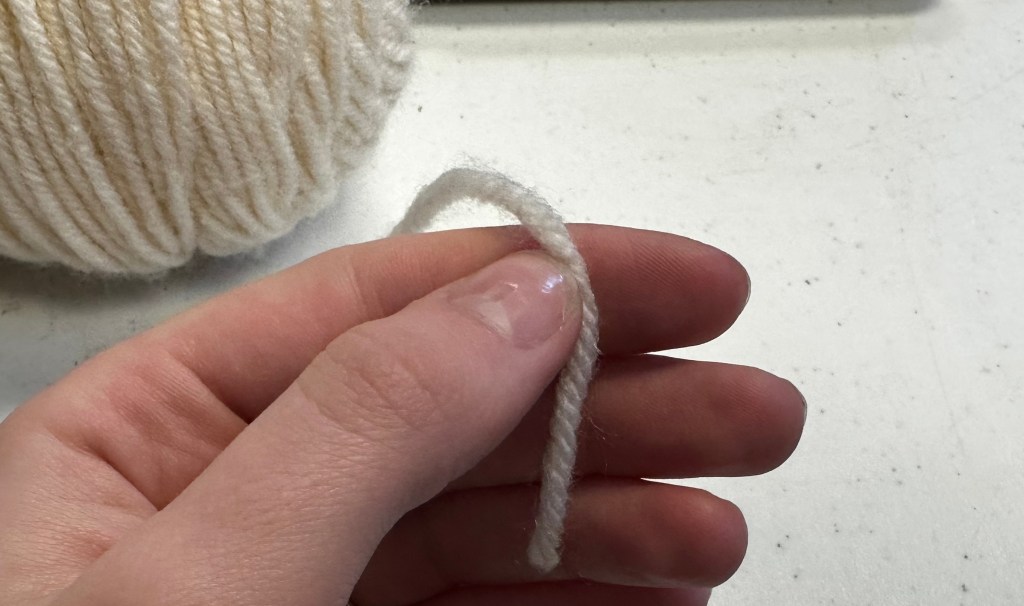I then go ahead and choose another slightly darker color of scrap yarn to make the bunny’s tail.