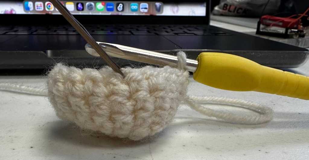 And decrease stitches before I go back to increase stitches to form the bunny’s head.
