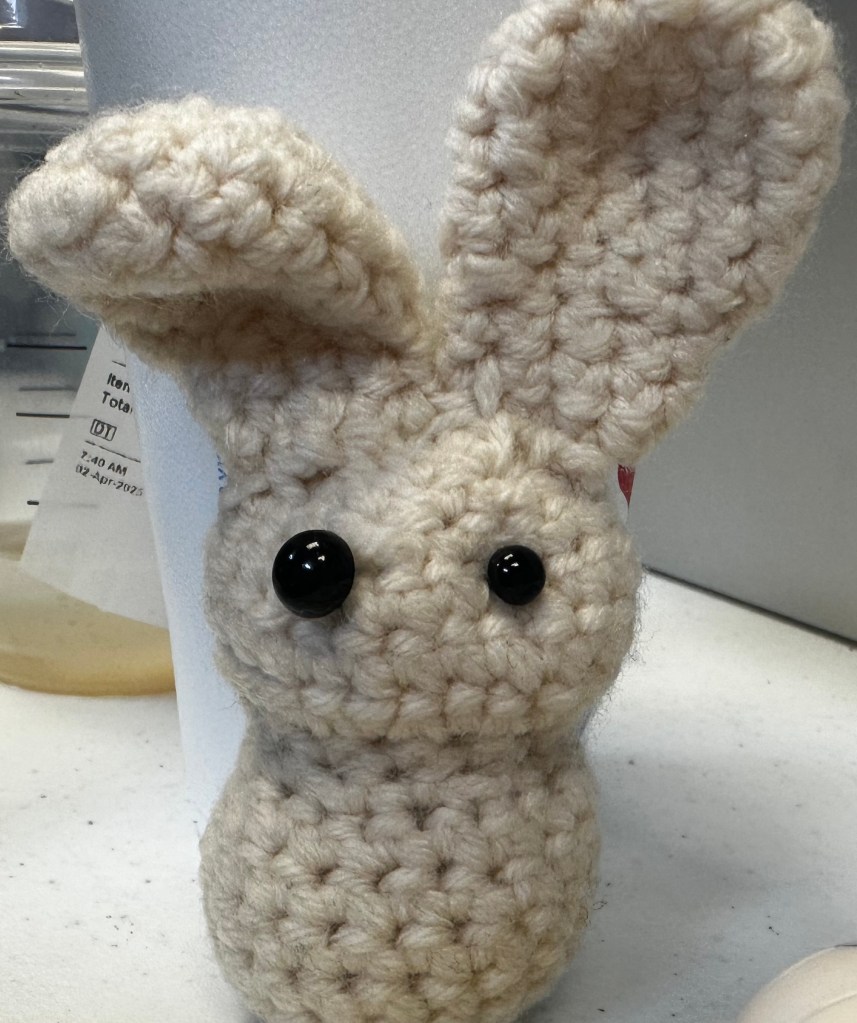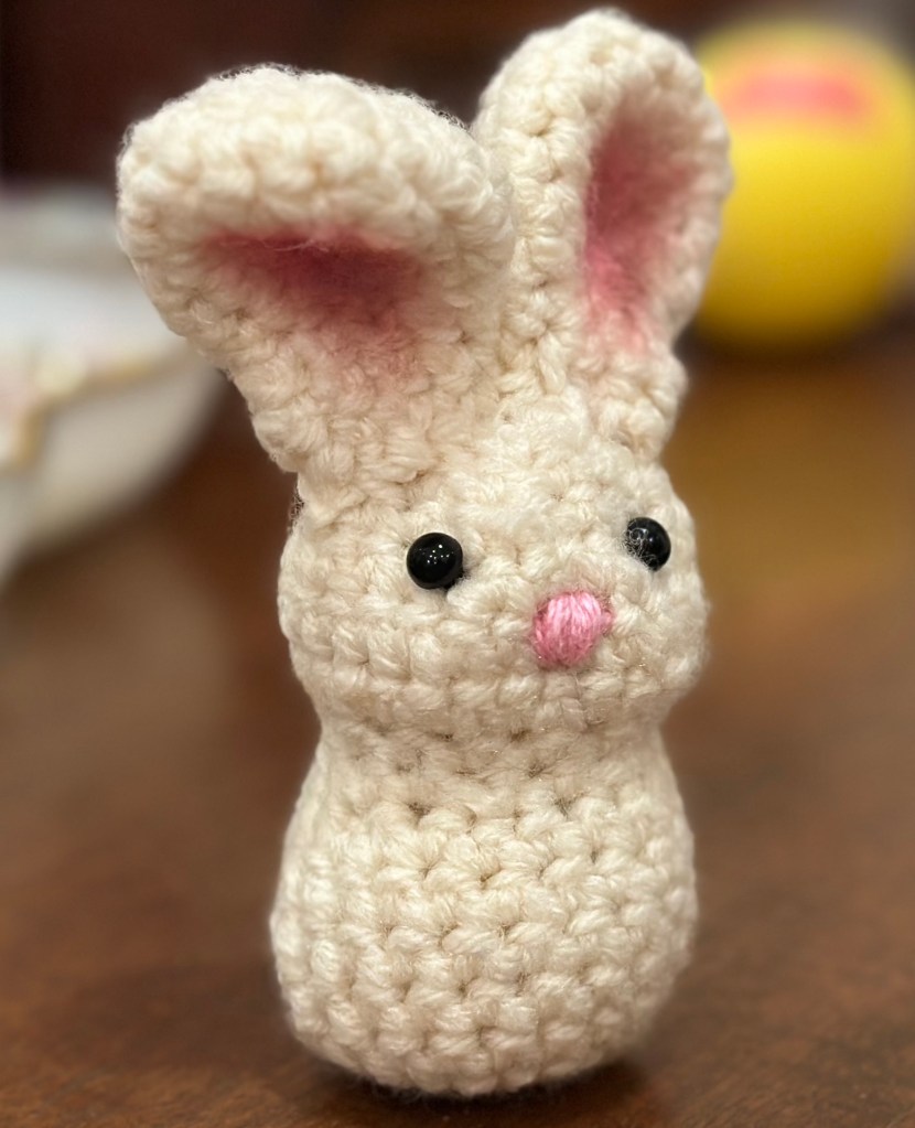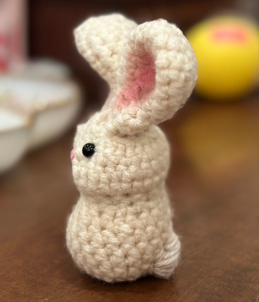 When I am looking to crochet something with leftover yarn from a previous project, I start to think about what the color reminds me of to draw inspiration from. Since it is April and almost Easter, I decided to make a small bunny with leftover cream yarn!