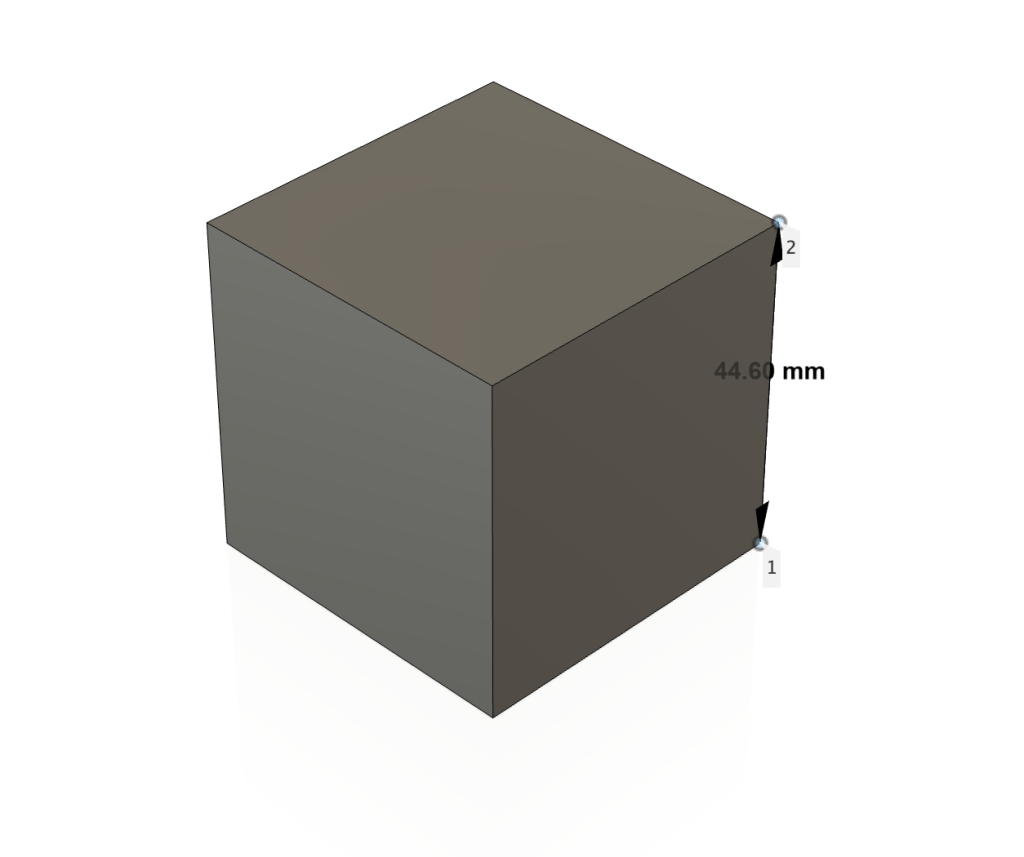 My measurement was 44.60 mm for the length, width, and height—it’s a perfect cube.