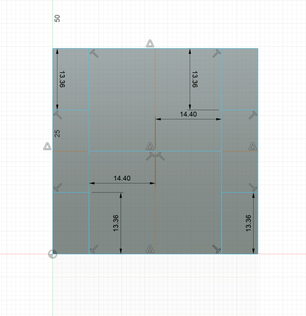 - To start, I used my caliper to get the length, width, and height of one face of the cube. Then, I modeled that face in Fusion as a sketch.
