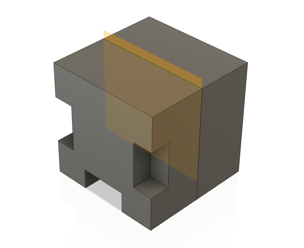 At this point, use the Mirror tool and the midplane to mirror the indent to the other side of the cube.